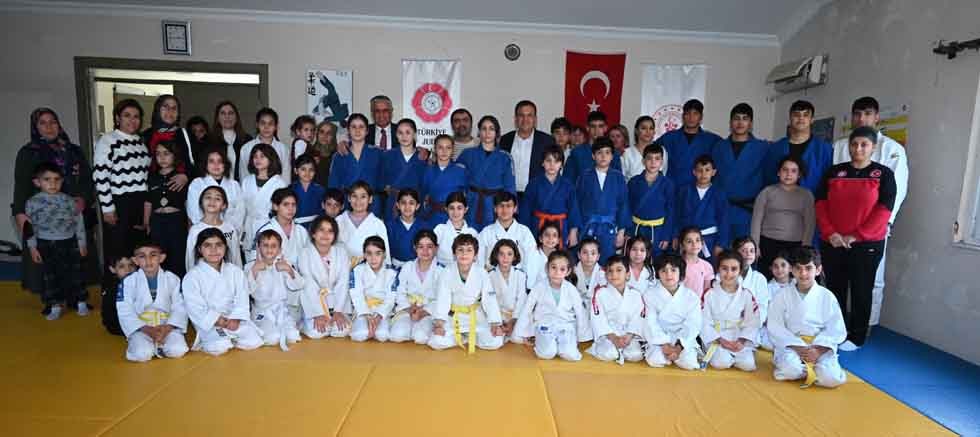 Kemer Belediye Başkanı Necati Topaloğlu ve Kemer Belediyesi Meclis Üyesi Semih Top, kursiyerleri ve judo antrenörü Zehra Aslan’ı ziyaret etti.