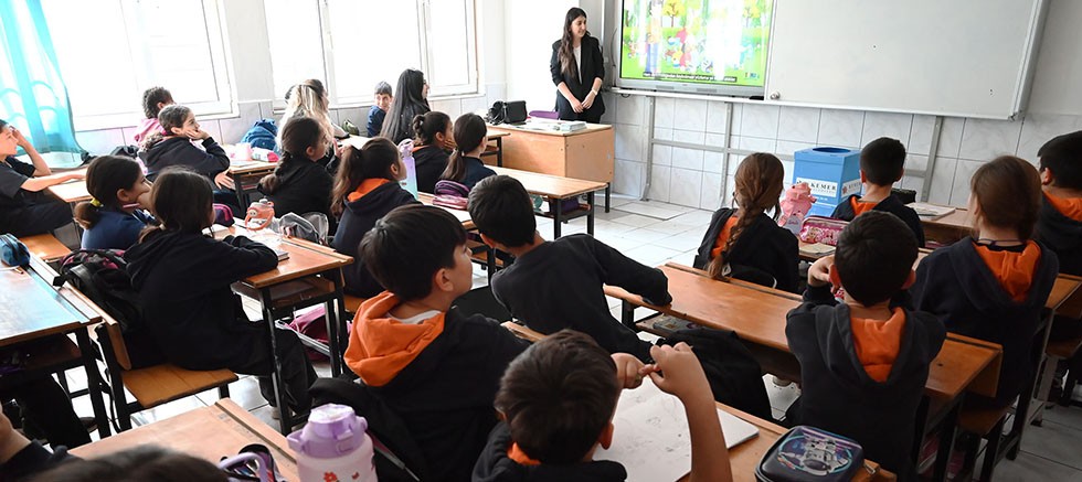 Kemer Belediyesi İklim Değişikliği ve Sıfır Atık Müdürlüğü, gelecek nesillerde sıfır atık bilincinin artırılmasına yönelik ilçedeki okullarda sıfır atık eğitimi veriyor.