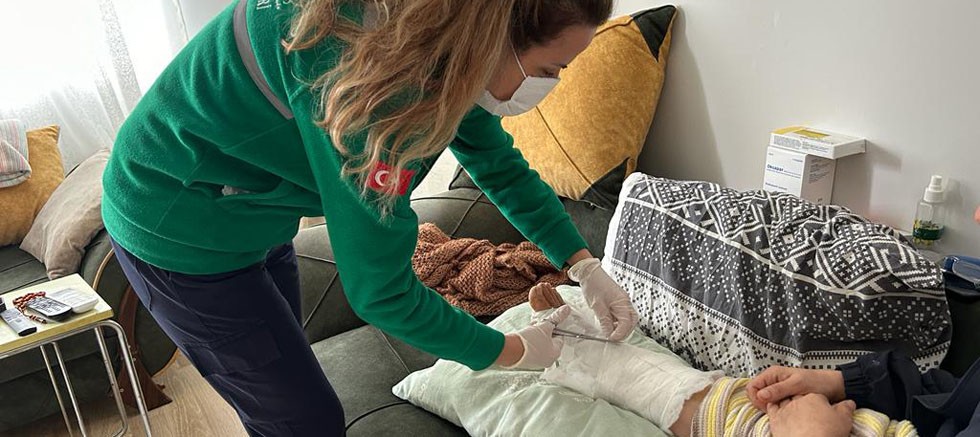 Bakıma muhtaç vatandaşlara evlerinde kişisel bakımlarını yapan belediye ekipleri, pansuman ve enjeksiyon ihtiyacı olan hasta vatandaşların da yardımına koşuyor.
