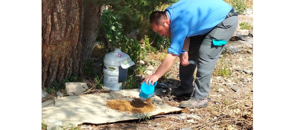 Kemer Belediyesi Sağlık İşleri Müdürlüğü ekipleri, sokak hayvanlarına mama desteği sağlıyor.