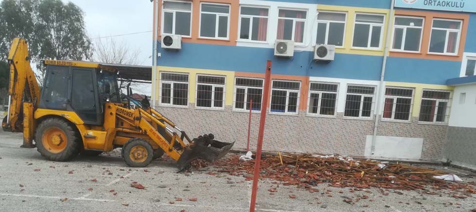 Kemer Belediyesi Temizlik İşleri Müdürlüğü ekipleri, Çamyuva Mahallesindeki Rukiye Koç Ortaokulunun bahçesinde ve bina içerisinde temizlik yaptı.