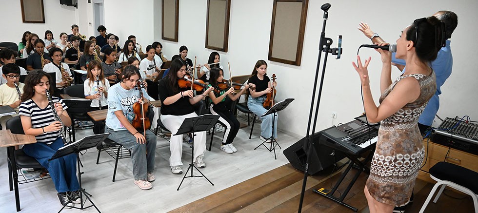 Kemer Belediye Başkan Yardımcısı Semih Top ve meclis üyesi Cansın Efir, orkestrada yer alan geleceğin müzisyenleriyle selamlaşarak sohbet etti.