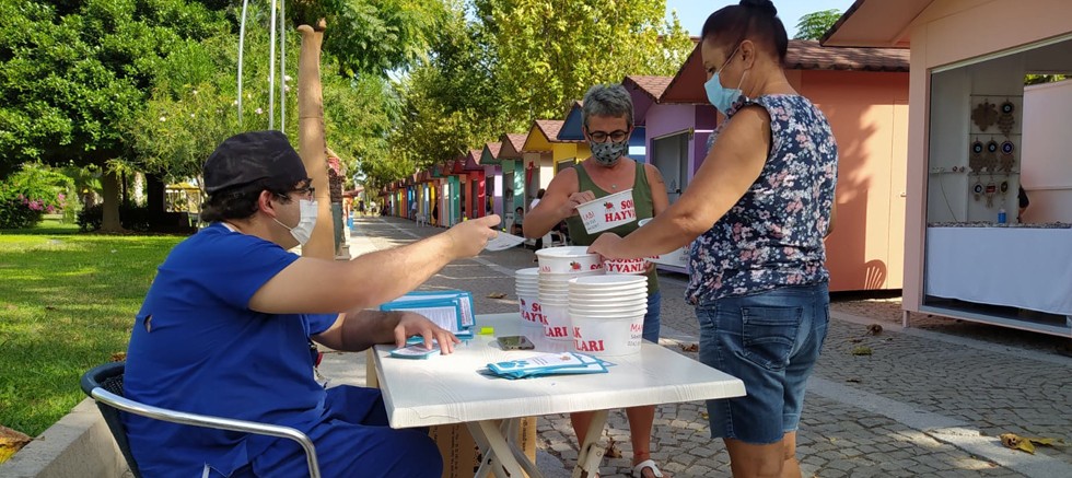 Kemer Belediyesi Veteriner Hekimi Fevzi Uzun, Kemer Sanat Sokağında kurduğu stantta Kemer’de yaşayan vatandaşlara, farkındalık yaratmak amacıyla sokak hayvanlarıyla ilgili bilgilendirme broşürleri ve sokak hayvanları için mama ve su kapları dağıttı.