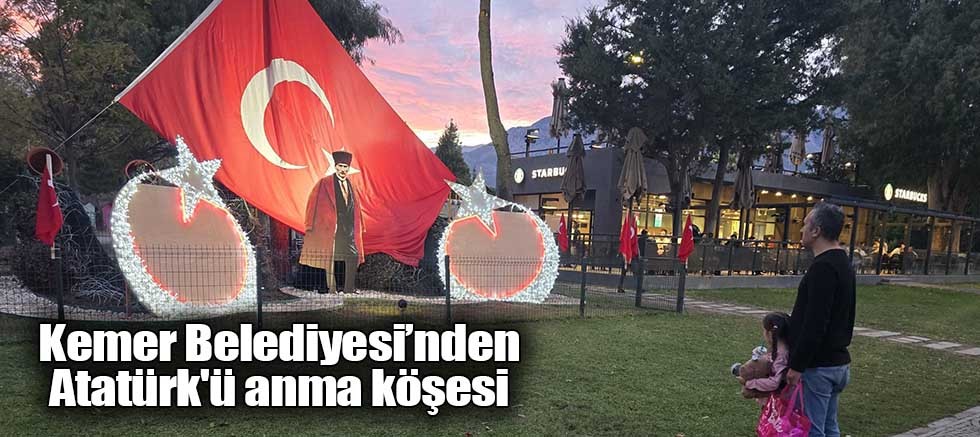 Kemer Belediye Başkanı Necati Topaloğlu, yaptığı açıklamada, "Ulu Önder Gazi Mustafa Kemal Atatürk'ün aramızdan ayrılışının 87'nci yıl dönümü dolayısıyla Deniz Kafe yanında bir anma alanı oluşturduk. Türk bayrağı ve Atatürk silueti vatandaşlarımız tarafından büyük ilgi görüyor. Özellikle gece görüntüsünü görenler cep telefonlarıyla fotoğraf çektiriyor. Atamızı her zaman her fırsatta saygı, özlem ve minnetle anmaya devam edeceğiz. Kurduğu Cumhuriyet emin ellerde." dedi.
