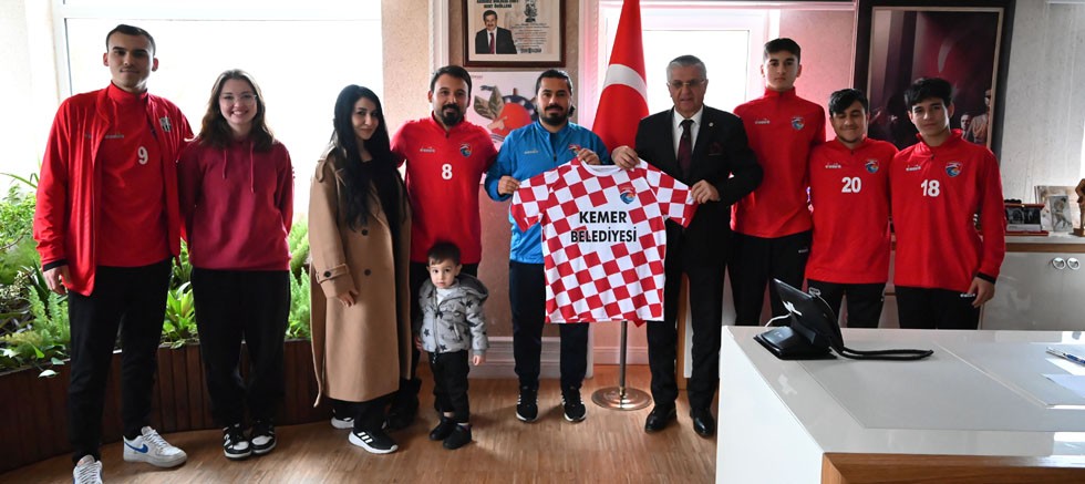 Kemer Belediyespor Kulüp Başkanı ve Antrenörü Öner Karagün ve futbolcular, Kemer Belediye Başkanı Necati Topaloğlu’na nezaket ziyaretinde bulundu.