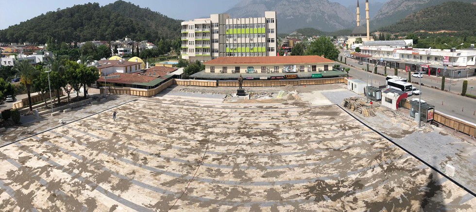 Büyükşehir Belediye Başkanı Muhittin Böcek’in talimatlarıyla başlatılan Kemer Cumhuriyet Meydanı Kentsel Tasarım Projesi’nde çalışmalar tüm hızıyla devam ediyor. Proje ile daha önce süs havuzlarının kapladığı alanların projeye dahil edilmesiyle yaklaşık 4 bin metrekareyi bulan geniş bir meydan ortaya çıkarıldı. Fiziki gerçekleşme oranı yüzde 90’ı geçen modern tasarım ile Kemer Cumhuriyet Meydanı adına yakışır bir hale getiriliyor.