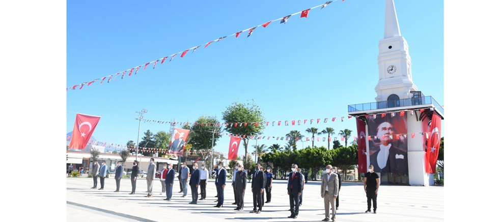 Pandemi tedbirleri alınarak yapılan tören, Gençlik ve Spor Müdürü Özkaynak'ın Atatürk Anıtına çelenk sunumunun ardından saygı duruşunda bulunulması ve İstiklal Marşı'nın okunmasıyla sona erdi.