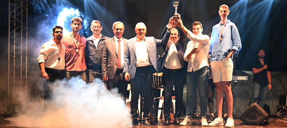 Başkan Topaloğlu ile Kemer Belediye Başkan Vekili Yılmaz, Kemer Belediye Başkan Yardımcısı Gül ve meclis üyesi Mustafa Tıraş, gün içerisinde yapılan basketbol turnuvasında dereceye giren sporculara ödüllerini verdi.