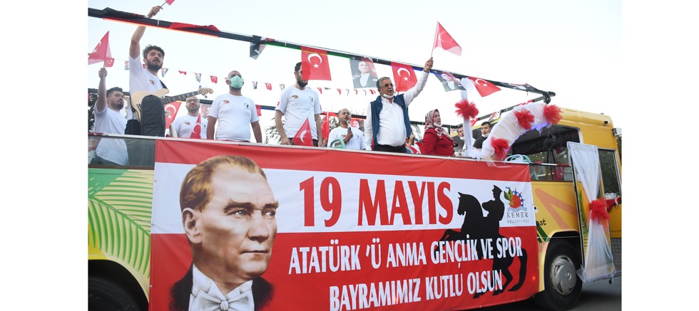 Pandemi tedbirleri kapsamında yapılan etkinlikte, Kemer Belediyesi Kültür ve Sosyal İşler Müdürlüğü tarafından hazırlanan üstü açık otobüsle kortej oluşturularak ilçe genelinde sokak sokak dolaştı.