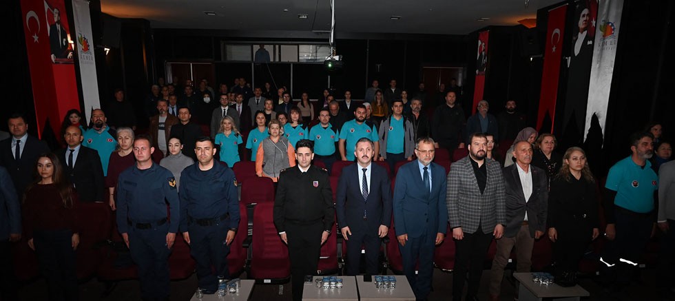 Kemer Belediyesi Afet İşleri Müdürü Fevzi Uzun, etkinlikte, fay hatları, büyüklüğü, yaşanan hasarla ilgili bilimsel bilgiler paylaştı.