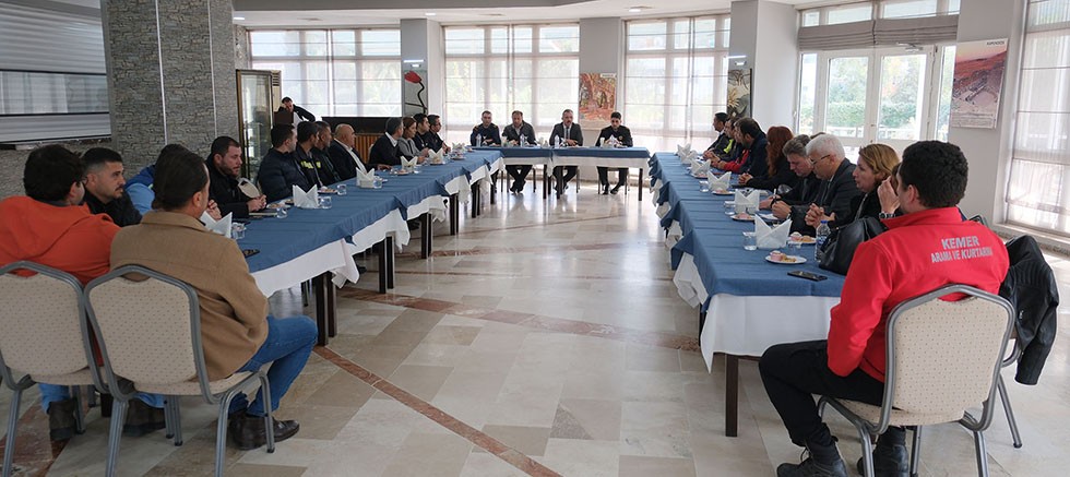 Kemer Uygulama Oteli’nde düzenlenen toplantıya, Kaymakam Solmaz’ın yanı sıra, Kemer Jandarma Komutanı Ömer Seyhan, Kemer Emniyet Müdür Vekili Yıldırım Ünal, Kemer Sahil Güvenlik Komutanı Soner Tuna, Kemer Belediyesi Afet İşleri Müdürü Fevzi Uzun, Kemer Arama ve Kurtarma Derneği (KEMKUT) Başkanı Emre Uğur, daire müdürleri ile muhtarlar katıldı.