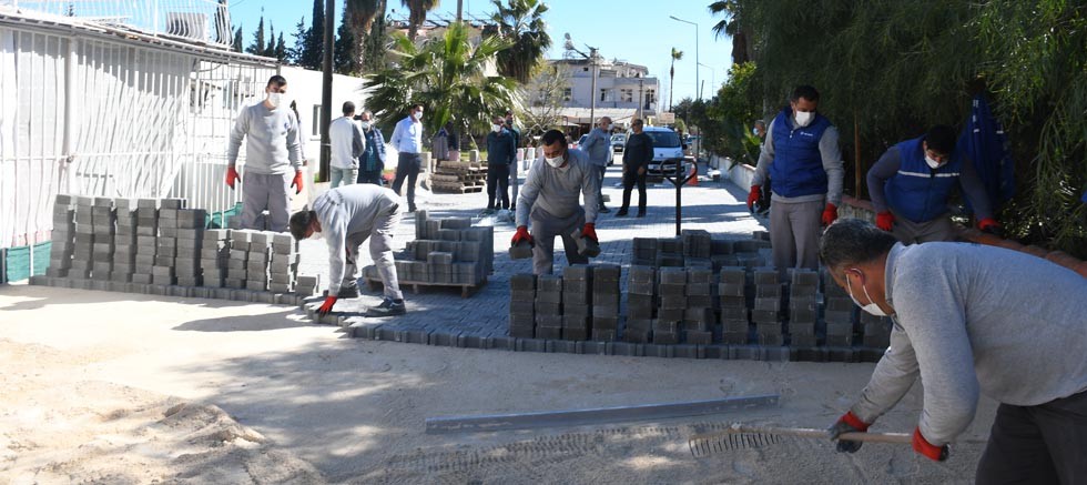 Beldibi Mahallesi 4021 sokakta yağmur suyu drenaj hattını tamamlayan ekipler, 30 bin metrekare kilit taş döşeme işlemlerini de sürdürüyor.
