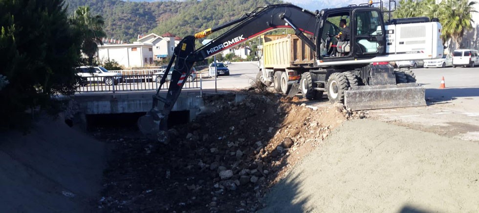 Kemer Belediyesinin yaptığı dere ıslah çalışmaları ile kış aylarında yaşanabilecek sel ve su taşkınlarının önüne geçilmesi amaçlanıyor.