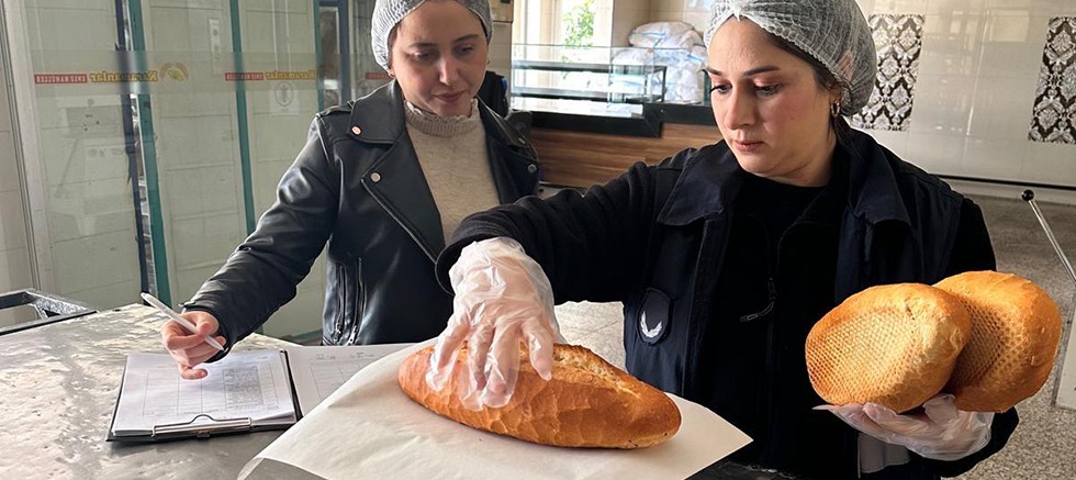 Denetim sırasında ekmeklerin gramajları ölçülerek kontrol edilirken hijyen kurallarına uyulup uyulmadığına bakıldı.
