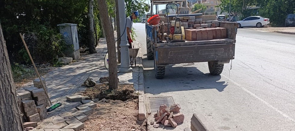 Belediye ekipleri, vatandaşların daha güvenli yürümeleri için ilçe genelinde bozulan ve tahrip olan kaldırımlarda onarım çalışmalarını gerçekleştiriyor.