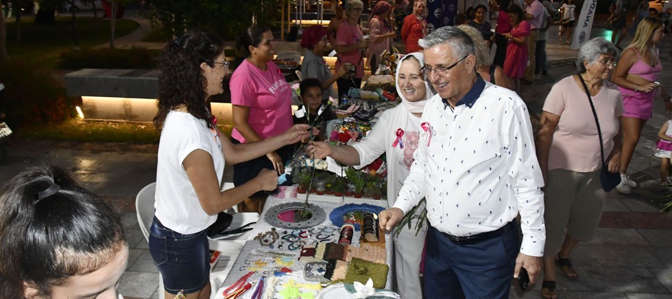 Kemer Belediyesi’nin destekleriyle her ay Atatürk Parkı’nda yapılan üreten ev hanımları buluşması kapsamında meme kanserine dikkat çekmek amacıyla etkinlik düzenlendi.
