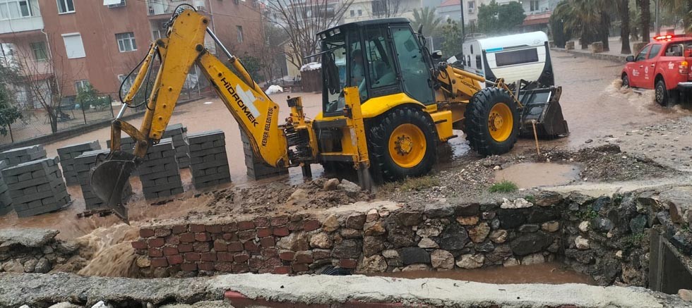 Vatandaşın yardımına koşan belediye ekipleri, ilçe genelinde tıkanan mazgalları açıyor, su baskınları olan yerlerde su tahliyeleri yapıyor, sel nedeniyle kapanan yolları açıyor.