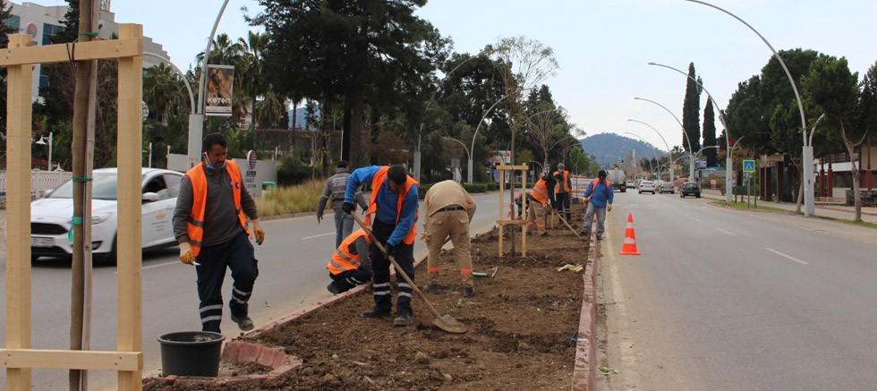 Antalya Büyükşehir Belediyesi Kemer ilçesinde turizm sezonu öncesi yoğun bir peyzaj çalışması gerçekleştiriyor.