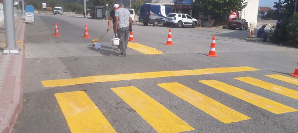 Yoğun araç trafiği ve mevsim şartları nedeniyle silinen ve görünmez hale gelen yaya geçitlerinin boyanmasıyla birlikte öğrenciler ve vatandaşlar yaya geçitlerinden daha güvenli şekilde karşıdan karşıya geçebilecek.