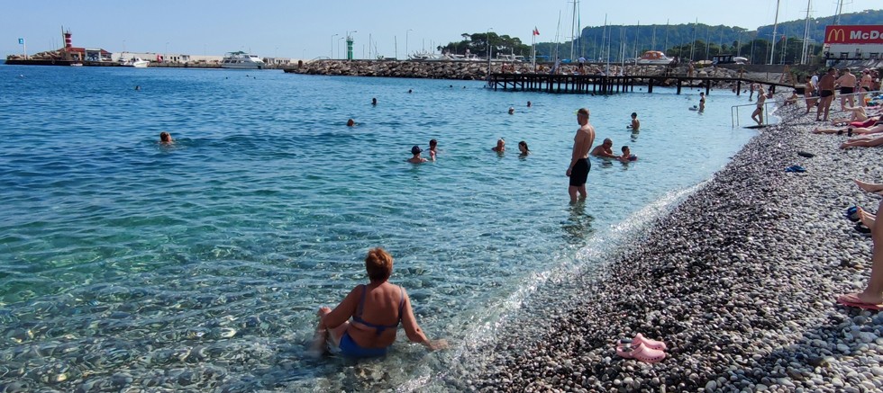 Kemer’de yerli ve yabancı misafirler sahillerde yoğunluk oluşturdu.