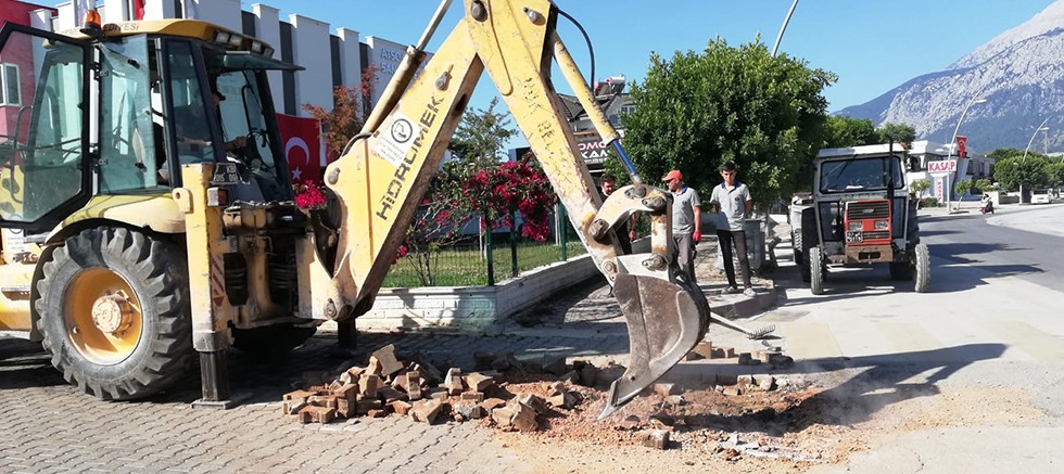Kemer Belediyesi Fen İşleri Müdürlüğü ekipleri, ilçe genelinde yol ve kaldırım çalışmalarına devam ediyor.