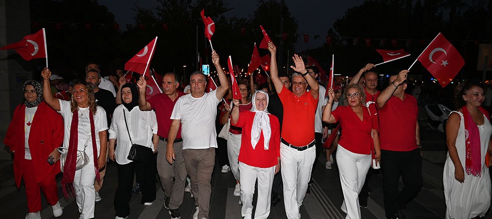 Fener alayı ve bayrak yürüyüşüne katılanlar, Liman Caddesi'nden geçerek Kemer Cumhuriyet Meydanı'na ulaştı. Vatandaşlar, ellerindeki meşaleler ile Türk bayraklarını sallayarak Zafer Bayramı kutlamaları coşkusuna ortak oldu.