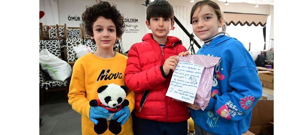 Kemer Belediyesi ve Arslanbucak Düğün Salonu’nda deprem bölgesine gönderilmek üzere toplanan yardım malzemeleri içerisinde gelen mektuplar, çocukların hatıralarıyla dolu oyuncukları görenlerin gözleri doluyor.