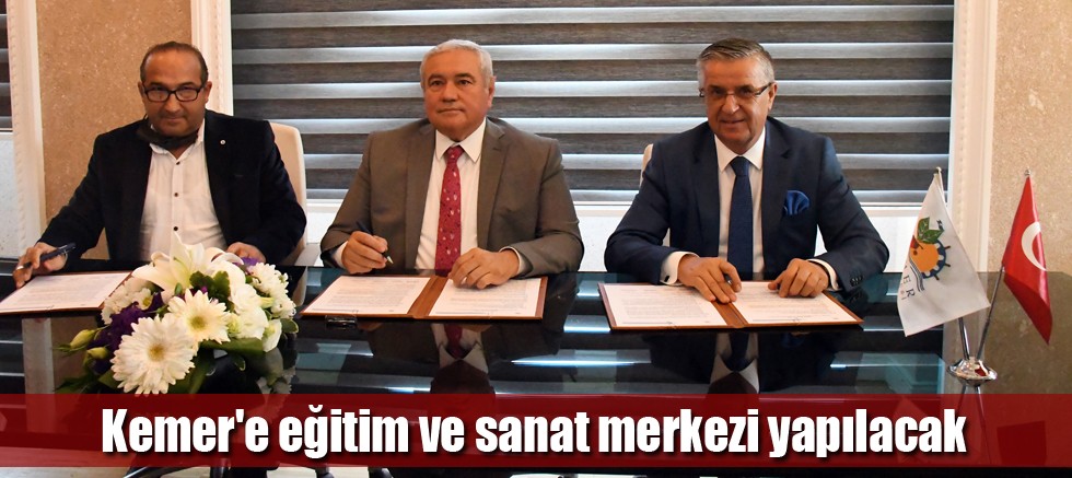 ATSO (Antalya Ticaret ve Sanayi Odası) ve Kemer Belediyesi iş birliğince Kemer’e eğitim ve sanat merkezi yapılacak. Konuya ilişkin protokol töreni Kemer Belediyesinde gerçekleştirildi.