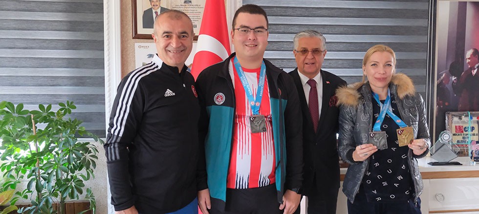 Büyükler İşitme Engelliler Para-Karate ve Veteranlar Türkiye Şampiyonası’nda dereceye giren sporcular Nastasia Florova ve Odar Alakov, Kemer Belediyesi Karate Antrenörü Emin Akar ile birlikte Kemer Belediye Başkanı Necati Topaloğlu’nu ziyaret etti.