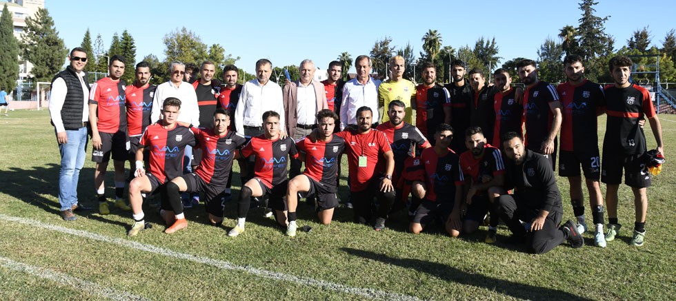 Maç sonrası Başkan Topaloğlu ve beraberindekiler, Kemer İdmanyurdu Spor Kulübü oyuncuları ile kulüp antrenörü Öner Karagün’ü tebrik etti.