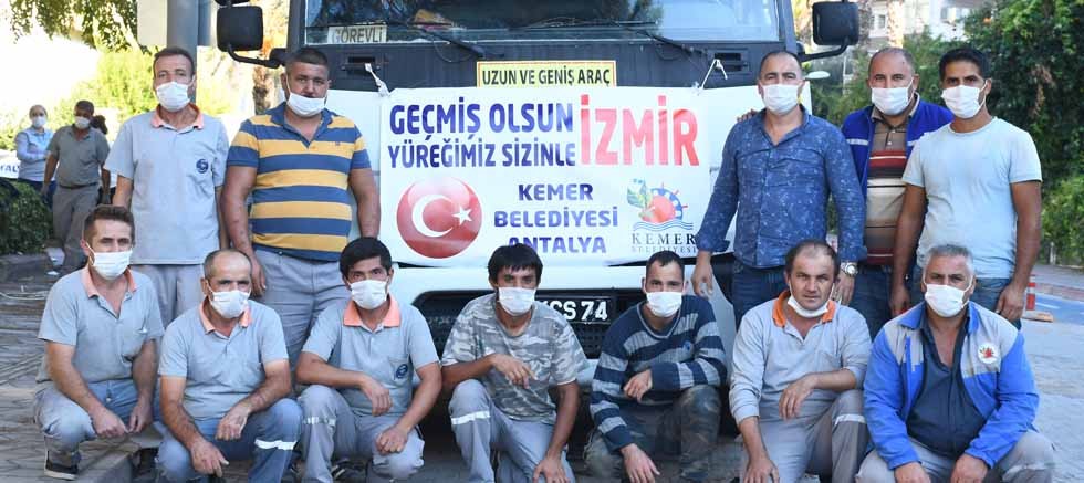 Kemer Kaymakamlığı, Kemer Belediyesi ve sivil toplum kuruluşları iş birliğince başlatılan yardım kampanyası kapsamında bakliyat, battaniye, giysi gibi eşyaların bulunduğu tır, Kemer Belediyesi önünde düzenlenen uğurlama töreniyle İzmir’e gitmek üzere hareket etti.