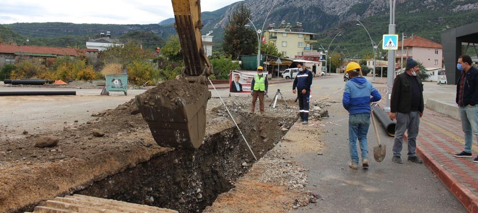 Antalya Büyükşehir Belediyesi ASAT ekipleri, Kemer ilçesi Kuzdere mahallesi Çaybaşı mevkiinde alt yapı çalışmasını sürdürüyor.