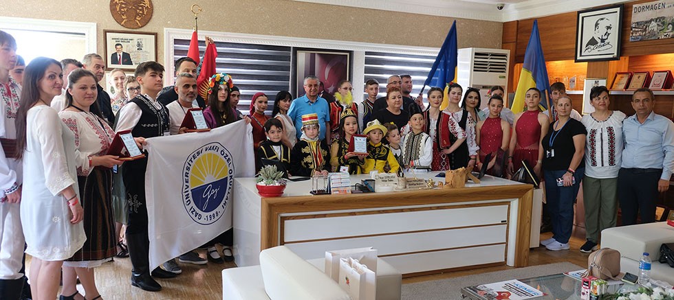 Ziyaret sonrası Önsoy ve dansçılar, Başkan Topaloğlu’na kendi ülkelerine ait yöresel kıyafet ve çeşitli hediyeler takdim etti.