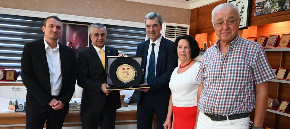 Almanya'nın Schwabach şehri ile Kemer kardeşliğinin 25. yılı dolayısıyla Schwabach Belediyesi’nden gelen heyet, Kemer Belediye Başkanı Necati Topaloğlu’nu makamında ziyaret etti.