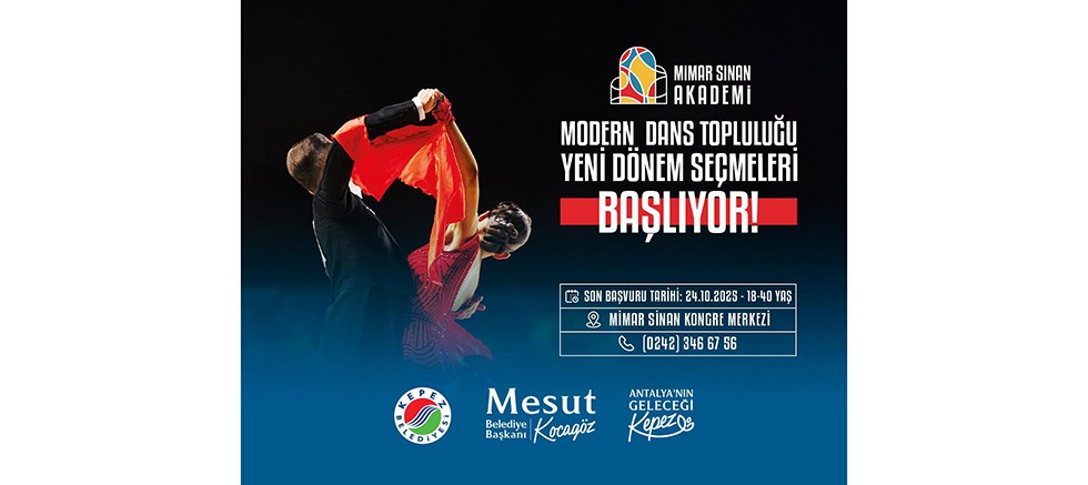 Kepez Belediyesi’nin kültür ve sanat alanında geleceğe kazandırdığı önemli projelerden biri olan Mimar Sinan Akademi, 2025-2026 dönemi için yeteneklerini arıyor. Akademinin, Modern Dans Topluluğu, Halk Dansları Topluluğu ve Çocuk Koroları seçmeleri için son başvuru tarihi 24 Ekim olarak belirlendi.