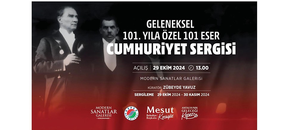 Kepez Belediyesi’nin katkılarıyla 29 Ekim Cumhuriyet Bayramı’na özel düzenlenen “101. Yıla Özel 101 Eser Cumhuriyet Sergisi” Modern Sanatlar Galerisi’nde saat 13.00’da sanatseverlere kapılarını açıyor.