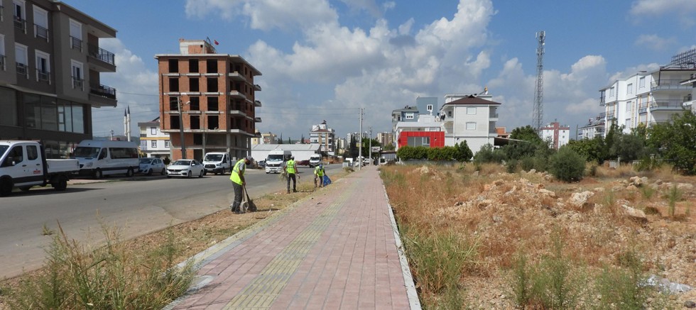 Kepez Belediyesi Temizlik İşleri Müdürlüğü, hazır ekip çalışmasıyla asfalt çalışmalarının yapılacağı cadde ve sokakları görüntü kirliliğine neden olan çöp ve otlardan temizliyor.