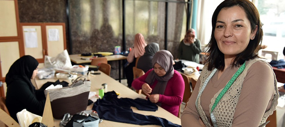 Kepez Belediyesi’nin Antalya Kepez Meslek Eğitim Kursları’nda (AKMEK) en fazla katılımın olduğu giyim sınıflarında, kadınlar dikiş türlerini ve kalıp çıkarmayı öğreniyor.