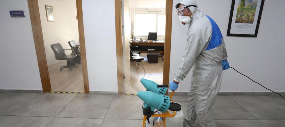 Kepez Belediyesi, küresel bir tehdit olan korona virüsüne karşı alınan tedbirler kapsamında başlattığı temizlik ve dezenfekte işlemlerini hummalı bir şekilde sürdürüyor. Kepez Belediyesi, vatandaşlara sağlıklı bir ortamda hizmet verilebilmesi için başta ilçe kaymakamlığı olmak üzere, kamu kurumlarını ve ilçede bulunan muhtarlık binalarını da dezenfekte ediyor. Virüs ile mücadelede önlem amaçlı dezenfeksiyon işlemlerine hız kesmeden devam edileceğinin altını çizen Kepez Belediye Başkanı Hakan Tütüncü, periyodik olarak dezenfeksiyon işlemlerinin sürdürüleceğini bildirdi. Tütüncü, “Resmi kamu binalarının dezenfeksiyon işlemlerini tamamlayarak, hijyenik ortamlarda hizmetin devamını sağlamış bulunuyoruz. Vatandaşlarımızın yoğun olarak bulunduğu her ortak alanı, hizmet sunulan her yeri hijyenik koşullara kavuşturmak için ekiplerimiz gece gündüz çalışıyor” dedi.