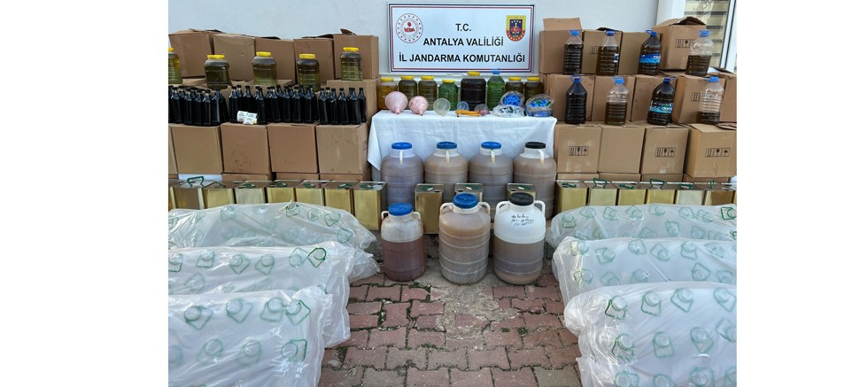 "Antalya Cumhuriyet Başsavcılığı talimatları doğrultusunda; Antalya İl J.K.lığı KOM Şb. Md.lüğü ve Kepez J.Krk.K.lığı ekiplerince Kepez ilçesinde Kaçakçılık ile mücadele kapsamında yürütülen çalışmalar sonucunda 6 şüpheli şahsın, gümrük işlemine tabi tutmaksızın yurtdışından getirmiş oldukları pamuk ve soya yağlarını ikametlerinin deposunda sakladikları, bu yağların icerisine aroma ve renklendirici endustriyel boya karıştırarak *sahte zeytin yağı* üretip piyasada sattığı yönünde bilgi alınması üzerine şüphelilere ait ikametlerde yapılan adli arama neticesinde;