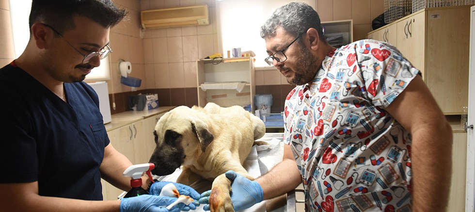 Patileri yaralanan sokak köpeği, Kepez Belediyesi Sokak Hayvanları Geçici Bakım Evi ve Rehabilitasyon Merkezi’nde tedavi edildi. Veterinerlik personelinin, sıcacık dokunuşu karşısında sakinliği ile dikkat çeken sokak köpeğine ‘Uslu’ adı verildi.