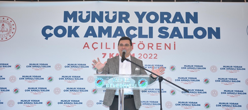 Kepez Belediye Başkanı Hakan Tütüncü, Antalya’nın büyüdüğünü ve büyüyen şehirle birlikte kurulan gönül bağlarının da büyüdüğünü söyledi. Okulun çok amaçlı salonuna neden Münür Yoran, isminin verildiğini açıklayan Başkan Tütüncü, “Bu okulda bir zamanlar Münür Hoca, vardı. Kendisi okulun Fen Bilgisi öğretmeniydi. Vatanperver, bayrağına, vatanına, milletinin değerlerine aşık biriydi. Güzel nesiller yetiştirmek için Anadolu’nun dört bir tarafını dolaştıktan sonra, bu okulda görev yapmaya başladı. Erken gelen bir vefatla aramızdan ayrıldı. Okulumuza bir salon lazımdı. O zaman buraya Münir Hocamın ismi çok güzel yakışır dedik. Salonumuz okulumuza hayırlı olsun. Münir hocamıza Allah rahmet etsin. Bu okula emek vermiş bütün öğretmenlerimizi de rahmetle, minnetle, şükranla yad ediyorum.” diye konuştu. Öğrencilere, “Sizleri çok seviyorum” diyerek sözlerini sürdüren Başkan Tütüncü, “Siz yeter ki, başarılı olmaya gayret edin. Daha çok çalışın. Biz her zaman bütün imkanlarımızla tıpkı bugün olduğu gibi yanınızda olmaya devam edeceğiz. Hepinize başarışlar diliyorum” dedi.