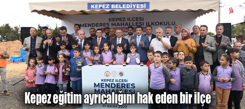 Kepez İlçesi Menderes mahallesinde tamamı devlet tarafından karşılanan 32 derslikli okulun temel atma törenine; Vali Ersin Yazıcı, Antalya Milletvekili Kemal Çelik, Kepez Kaymakamı Nusret Şahin, Kepez Belediye Başkanı Hakan Tütüncü, İl Milli Eğitim Müdürü Emre Çalışkan, Menderes Mahalle Muhtarı Mehmet Eren katıldı. Tören Yeni Mahalle İlkokulu Halk Oyunları Ekibi’nin gösterisiyle başladı.