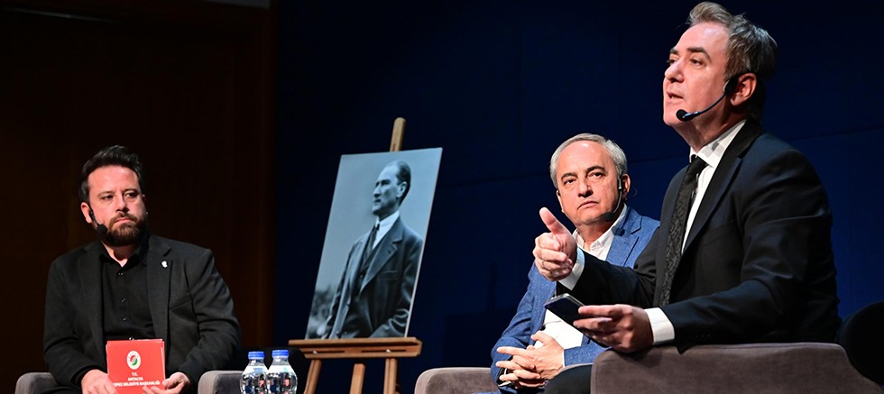 Tarihçi ve Yazar Sinan Meydan, “Atatürk, Kadın ve Çocuk” konulu söyleşide dinleyicilerini tarihte 110 yıl önceye doğru yolculuğa çıkardı. Osmanlı İmparatorluğunun 19. ve 20. Yüzyıllarına değinerek, o dönemde Osmanlıya, Türklere dünyanın bakış açısını anlattı. ‘Osmanlıya Hasta Adam’ denildiğini, Türklerden bahsedilirken de çirkin, şişman, korkunç ifadelerinin kullanıldığını hatırlattı. Dünya, o dönemde ‘Osmanlı için hasta adam ölüyor’ diye sevinirken, aslında Kurtuluş mücadelesi başladığını, hasta adamın ölümüyle aslında bir genç doğduğunu, Kurtuluş savaşı ile doğan gencin Türkiye Cumhuriyeti olduğunu söyledi. Kurtuluş Savaşı’nın Osmanlı da en çok kadın ve çocuklara zarar verdiğini belirten Yazar Meydan, “ Erkeler cepheye gidiyordu, geride kalan kadınlar ve çocuklar perişan haldeydi. 1877-1878 Osmanlı Rus savaşı bizlere büyük bir travma yaşattı. Çünkü iki Türkiye kadar toprak kaybettik. Balkan, Kafkas coğrafyasının önemli bir bölümü gitti. Büyük göçler yaşandı. Osmanlı da, Türler de Balkanları kaybetmek anavatanı kaybetmekti. O sırada Anadolu’ya göç oldu. Çok sayıda Türk katledildi” dedi.