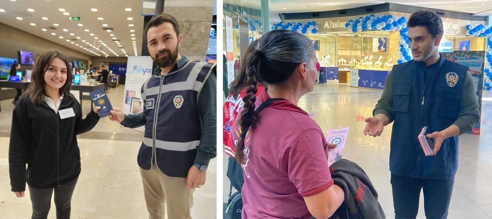 "İl Emniyet Müdürlüğümüz birimlerimizce ilimiz sorumluluk alanlarında kamu güvenliğini korumak, toplumun güvenlik hizmetlerine katılımını sağlamak ve vatandaşlarımızın suçlara yönelik alabilecekleri önlemler hakkında bilgilendirme ve bilinçlendirme çalışmaları yürütülmektedir. Kadın ve çocukların fiziksel veya psikolojik şiddete karşı korunmasını amaçlayan KADES uygulaması; akıllı telefon kullanıcısı kadınların, IOS ve Android marketlerinden indirebileceği ve T.C. Kimlik Numarasını girerek, sonrasında gelen onay koduyla aktif hale getirebileceği bir uygulamadır. Şiddet mağduru kadınların cihaz konum bilgileri açık halde iken uygulama butonuna tek bir dokunuşla en hızlı şekilde 112 acil çağrı merkezine ulaşmaları sağlanmakta ve sonrasında olay yerine en yakın ekip sevk edilerek olaya müdahale edilmekte, şüphelinin yakalanması ile mağdura yönelik gerekli güvenlik tedbirleri sağlanmaktadır. 6284 Ailenin Korunması ve Kadına Karşı Şiddetin Önlenmesine Dair Kanun kapsamında, Kepez İlçe Emniyet Müdürlüğü personelimizce vatandaşlarımızın yoğun olduğu çeşitli AVM’lerde yaklaşık 1600 kişiye ulaşılarak KADES Uygulaması anlatılmış ve hiçbir şiddet türünün kabul edilebilir olmadığı, şiddete maruz kalınması durumunda kolluk kuvvetleriyle iletişime geçebilecekleri konusunda bilgilendirme yapılmıştır.