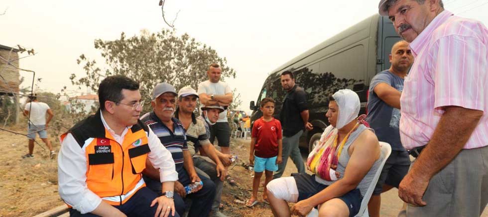 Bir yangınzedenin “Her şeyimiz gitti Başkanım…” sözleri üzerine; “ Herkesin kalbi, gönlü, duyguları sizlerle birlikte. Parayla yapılabilecek olan her şey Allahın’ın izniyle yapılır. Toparlayacağız. Her zaman yanınızdayız. Bütün ekiplerimizi topladık getirdik, yanınızdayız. Köy köy geziyoruz. Canınızı hiçbir şeye sıkmayın. Allah’ın izniyle devletimiz burada olmaya devam edecek. Her şey düzelene kadar burada olacağız. Sizin yanınızda olacağız. Ev yanar yerine yenisi yapılır, eşya kırılır yenisi yapılır, can giderse bunun telafisi yok. Allah’ın izniyle devletimiz yanınızda olacak. “diye konuştu.
