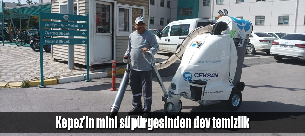 Kepez Belediyesi’nin temizlik filosuna kazandırılan elle çekilir mini elektrikli yol süpürme makinesi dev temizlik yapıyor.