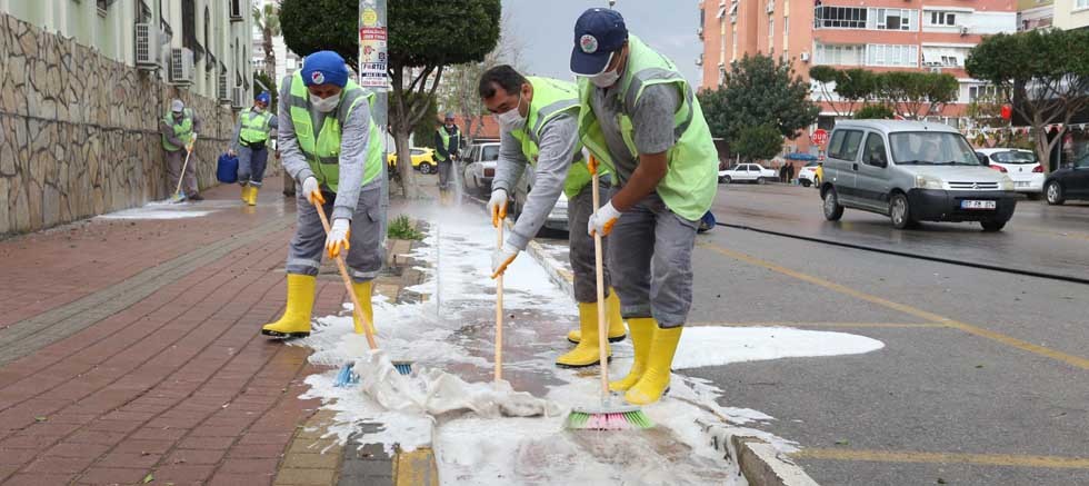 Kepez Belediyesi, küresel bir tehdit olan koronavirüse karşı başlattığı temizlik ve dezenfekte çalışmalarını sokaklara taşıdı. Cadde, sokak ve çöp konteynerlerini deterjanlı sularla yıkayan ve ilaçlayan ekipler, bir yandan da cami, çocuk oyun parklarını da dezenfekte ediyor.
