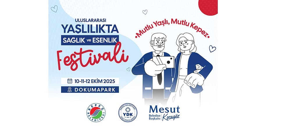 Kepez Belediyesi, Yaşlı Dostu Kepez Projesi kapsamında bu yıl ilk kez 10-11-12 Ekim tarihleri arasında Uluslararası Yaşlılıkta Sağlık ve Esenlik Festivali düzenliyor. Dokumapark’ta gerçekleştirilecek festivalde, sağlıklı, aktif ve huzurlu bir yaşam için farkındalık oluşturulması hedefleniyor.