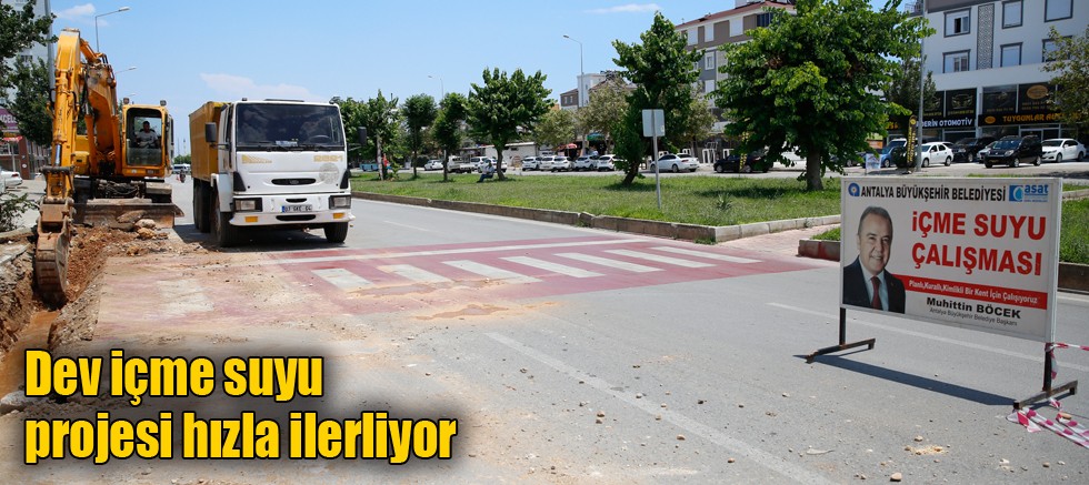 Antalya Büyükşehir Belediyesi ASAT Genel Müdürlüğü tarafından yürütülen dev içme suyu projesine ilk kazma 22 Mart Dünya Su Günü’nde vurulmuştu. Kepez ve Muratpaşa ilçelerinde ekonomik ömrünü tamamlayan ve sık sık arızalanan hatların yenilenerek, vatandaşlara daha sağlıklı ve verimli içme suyu hizmetinin sağlanması amacıyla başlatılan proje hızla devam ediyor. Proje kapsamında bugüne kadar Muratpaşa ilçesinde Üçgen, Kepez ilçesinde Varsak Karşıyaka, Şelale, Yeni Emek, Altınova, Göksu Mahallelerinde toplam 12 bin 533 metre içme suyu ana hat borusu ile 1425 abone şube yolu yenilendi.